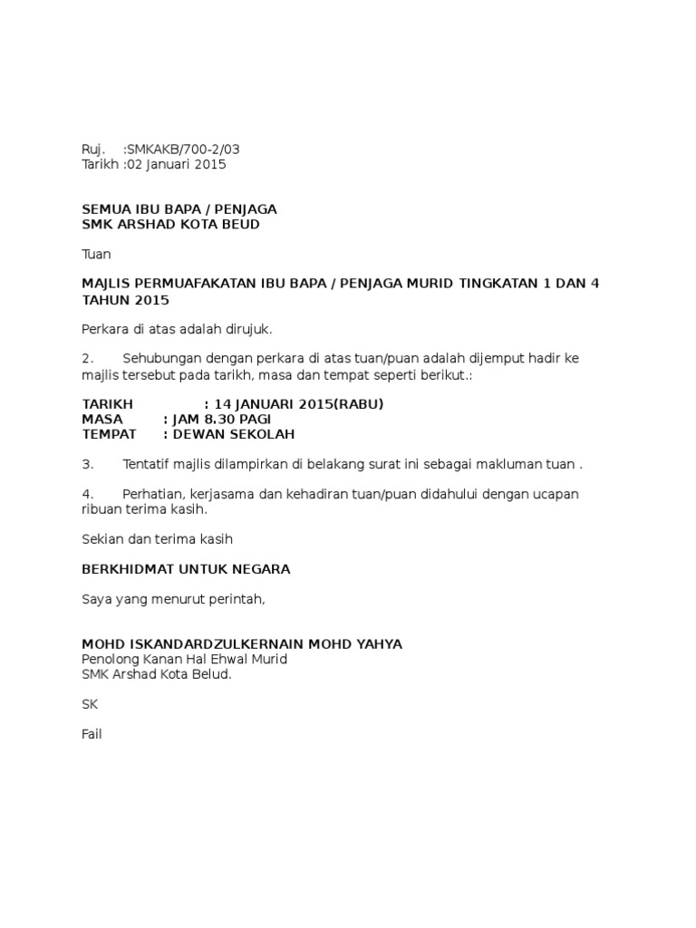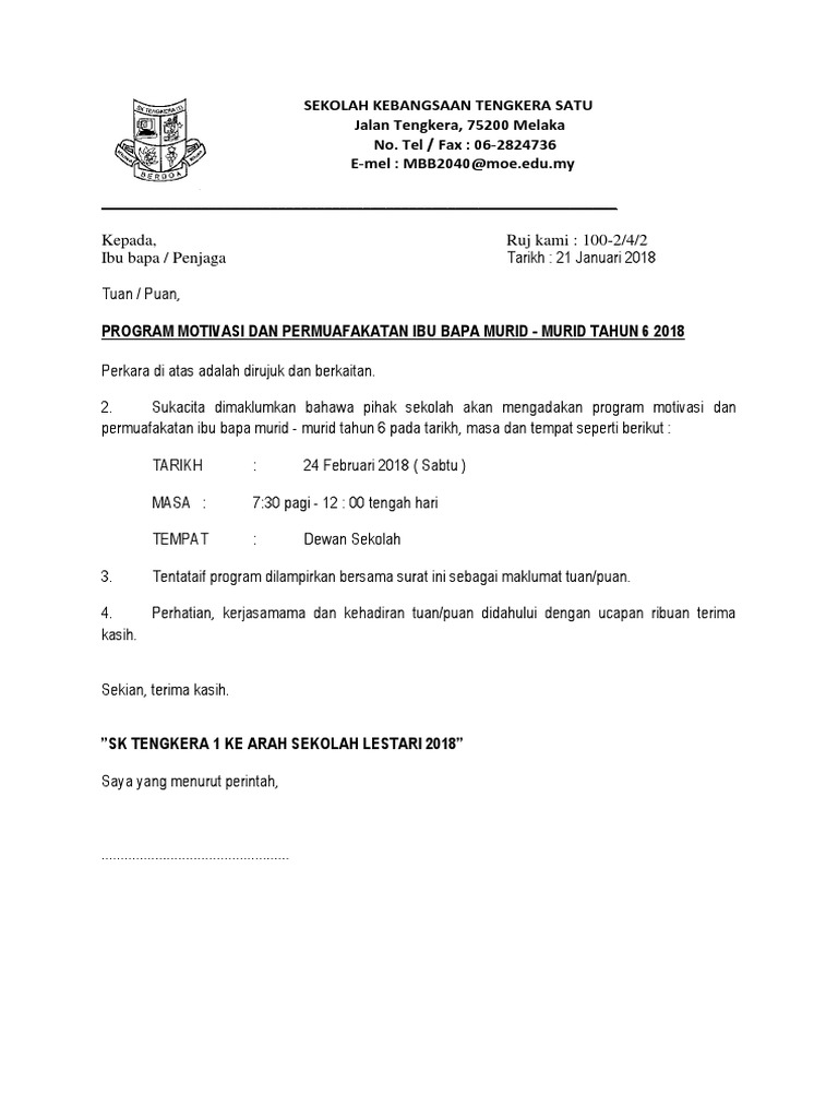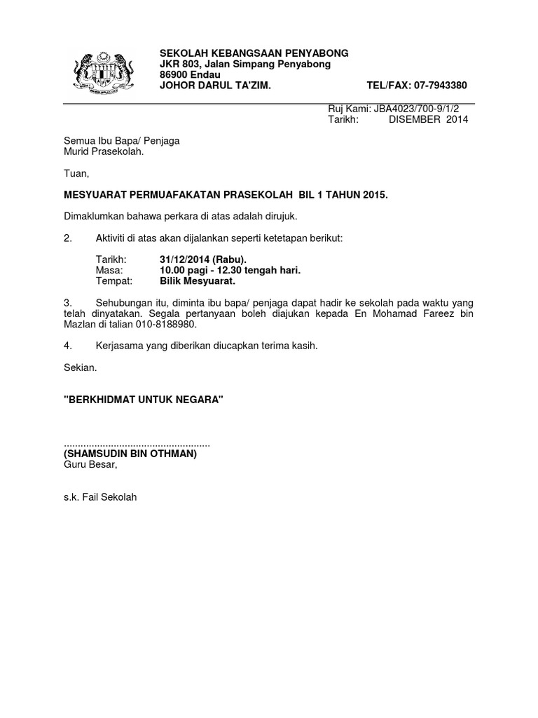 Sekolah merupakan sebuah institusi pendidikan yang ditubuhkan oleh masyarakat. Contoh Surat Panggilan Mesyuarat Permuafakatan. Kamis 25 Januari 2018.